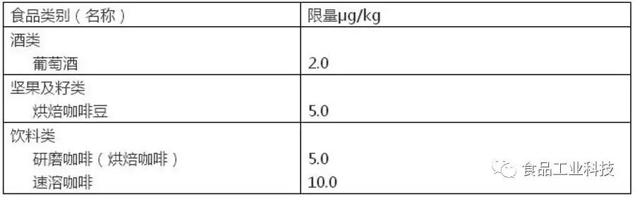 增加了葡萄酒和咖啡中赭曲霉毒素A限量